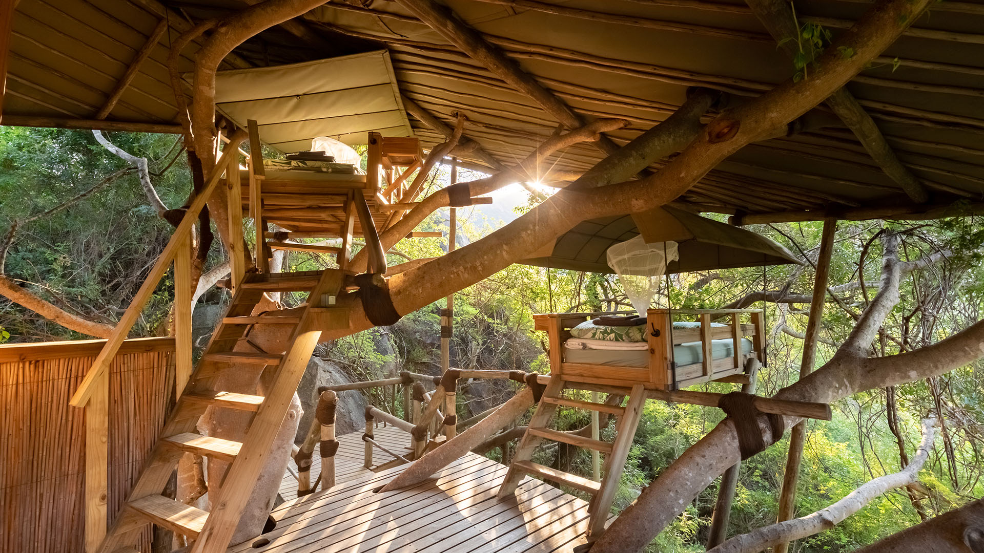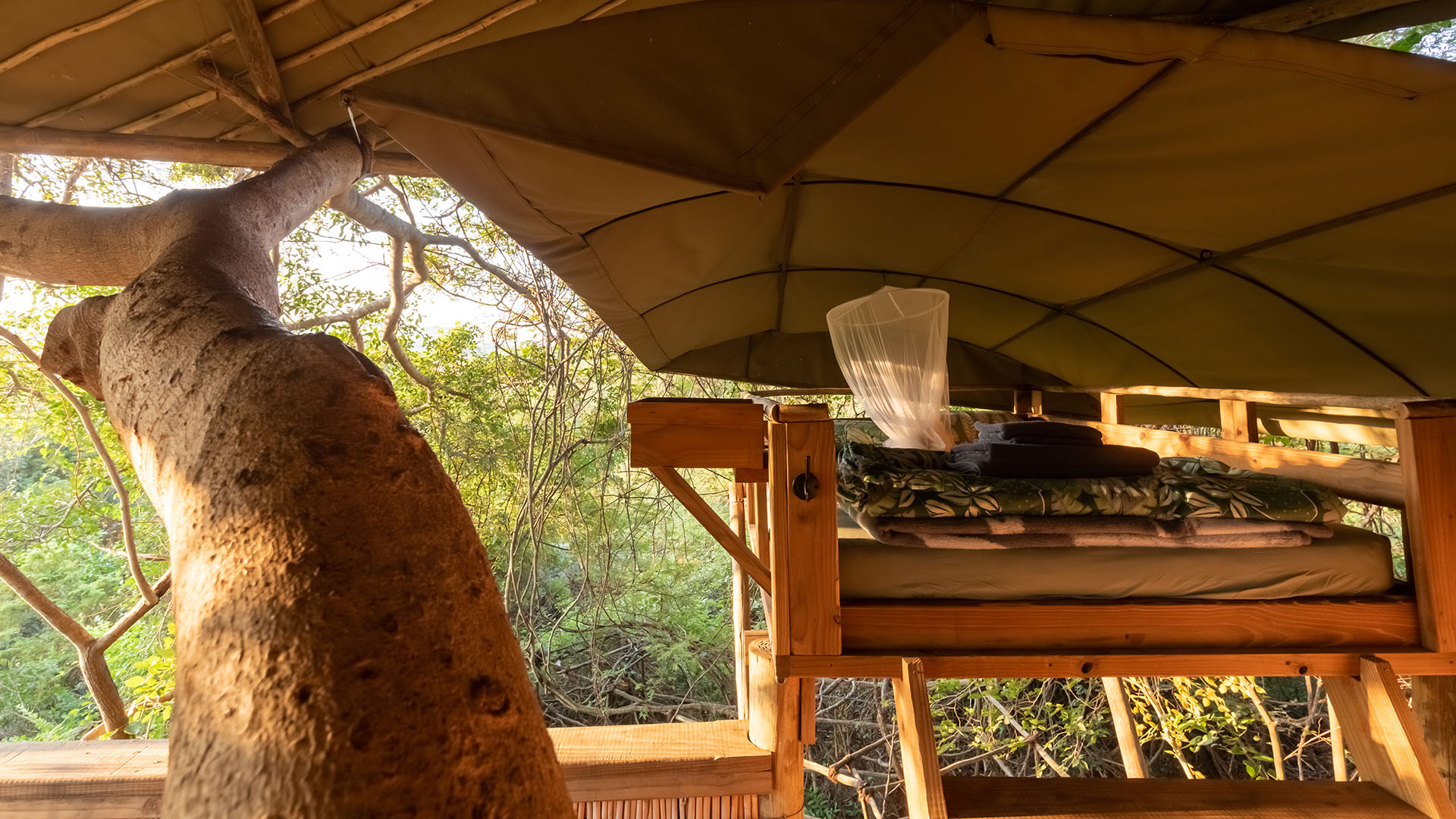 Come and camp in a tree. You will sleep high up in the canopy of this forest giant open to the elements – yet protected. Wild and primitive yet at the same time comfortable and secure. All amenities are provided – ablutions, hot shower, cooking facilities, beds – in the heart of the Lowveld bush.